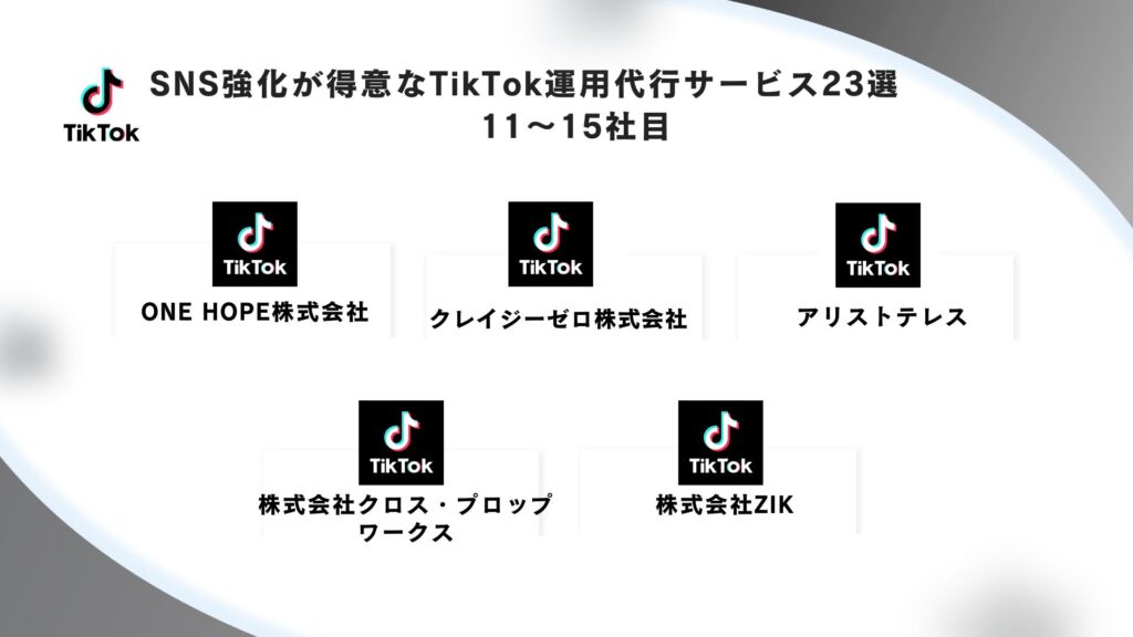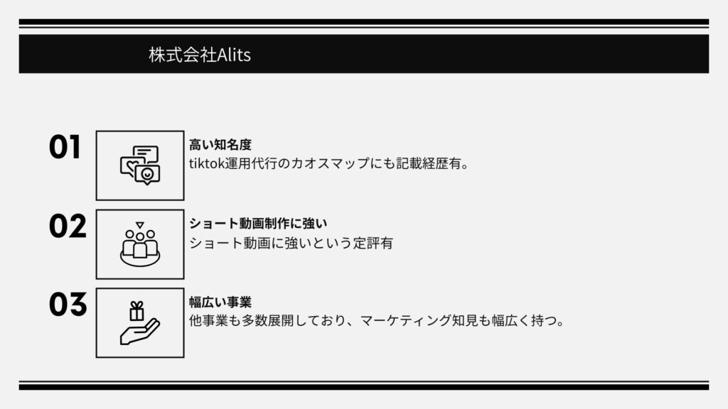 株式会社AlitsはTikTok運用のディレクション体制と若年層向けコンテンツ企画に定評があります。