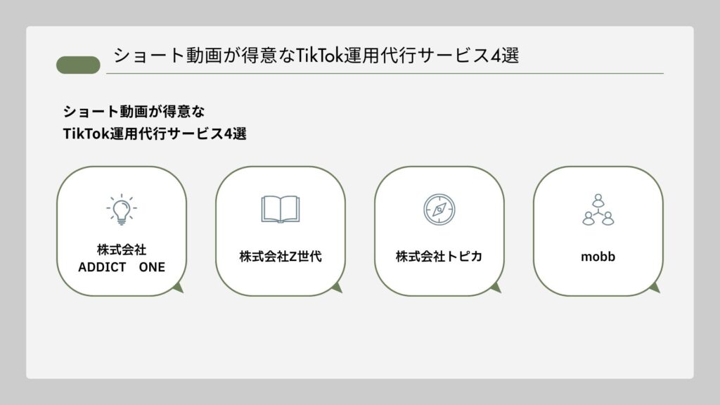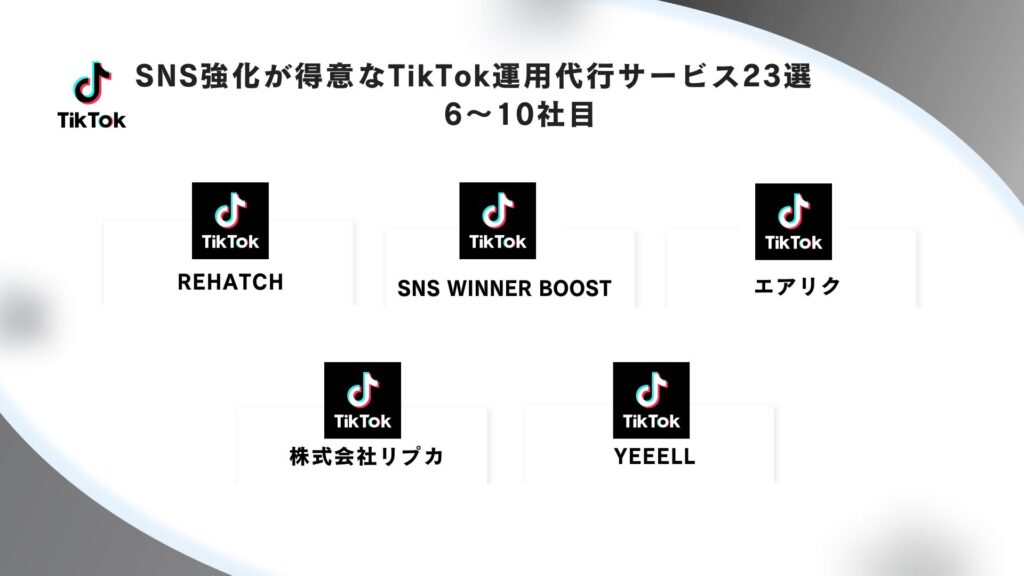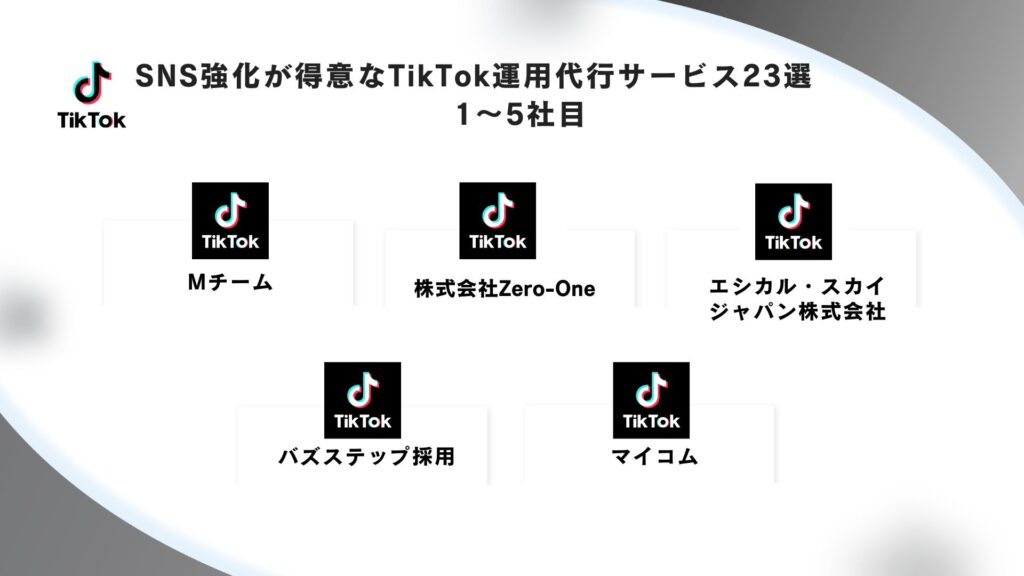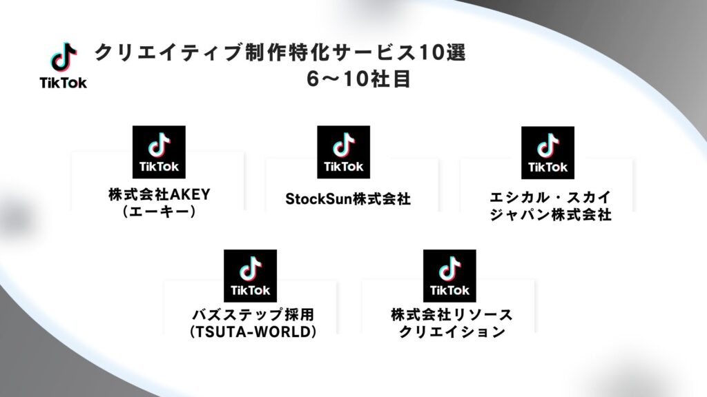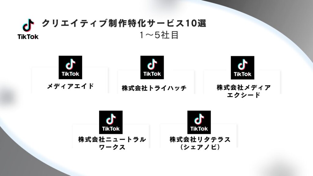 同社はTikTokを軸に運用代行・広告運用・インフルエンサー施策など幅広い支援を提供しています。