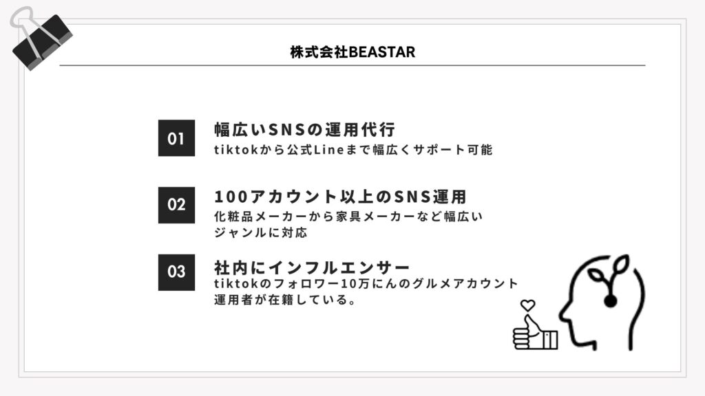 複数SNSの運用から短尺映像までワンストップで任せやすい総合支援が魅力です。