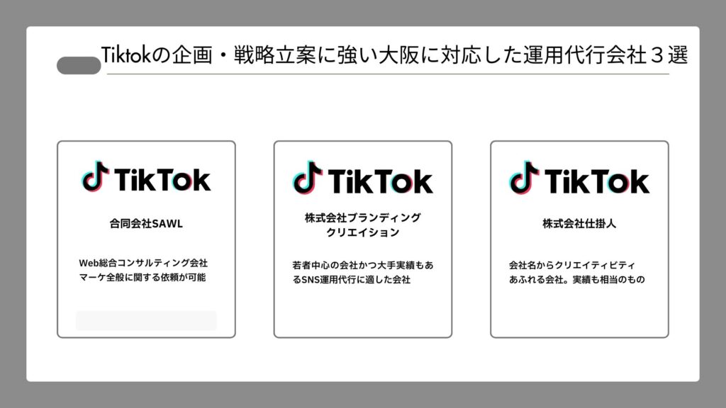 Tiktokの企画・戦略立案に強い大阪に対応した運用代行会社3選