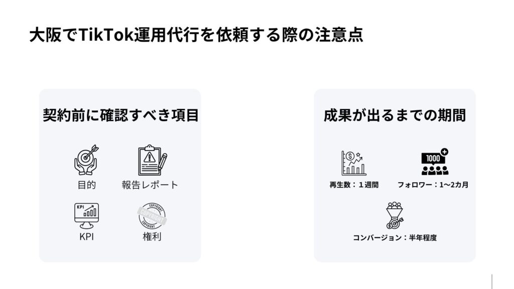 契約前にレポート内容・頻度・KPI整合を固め、期待値の齟齬を避けましょう。